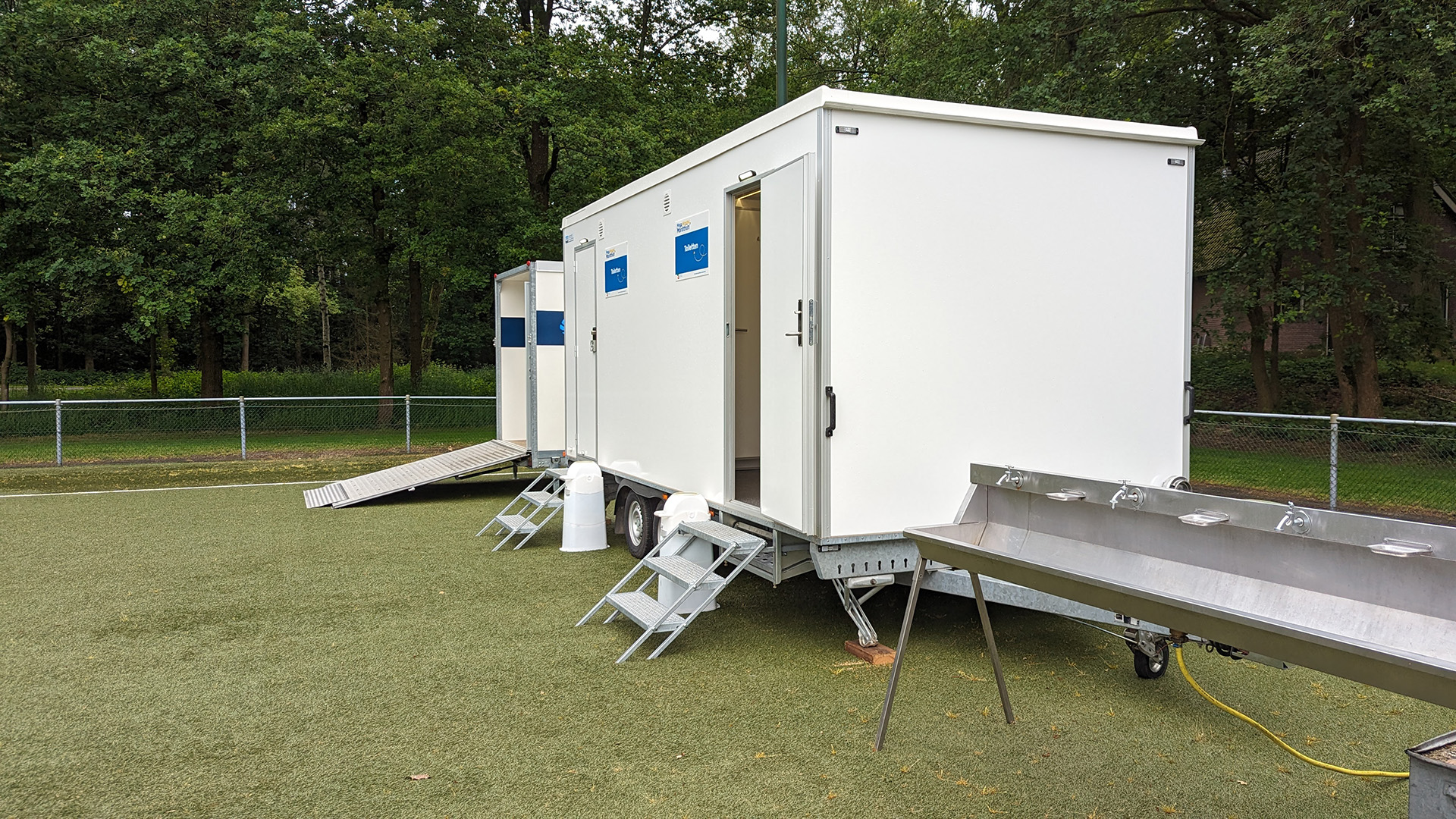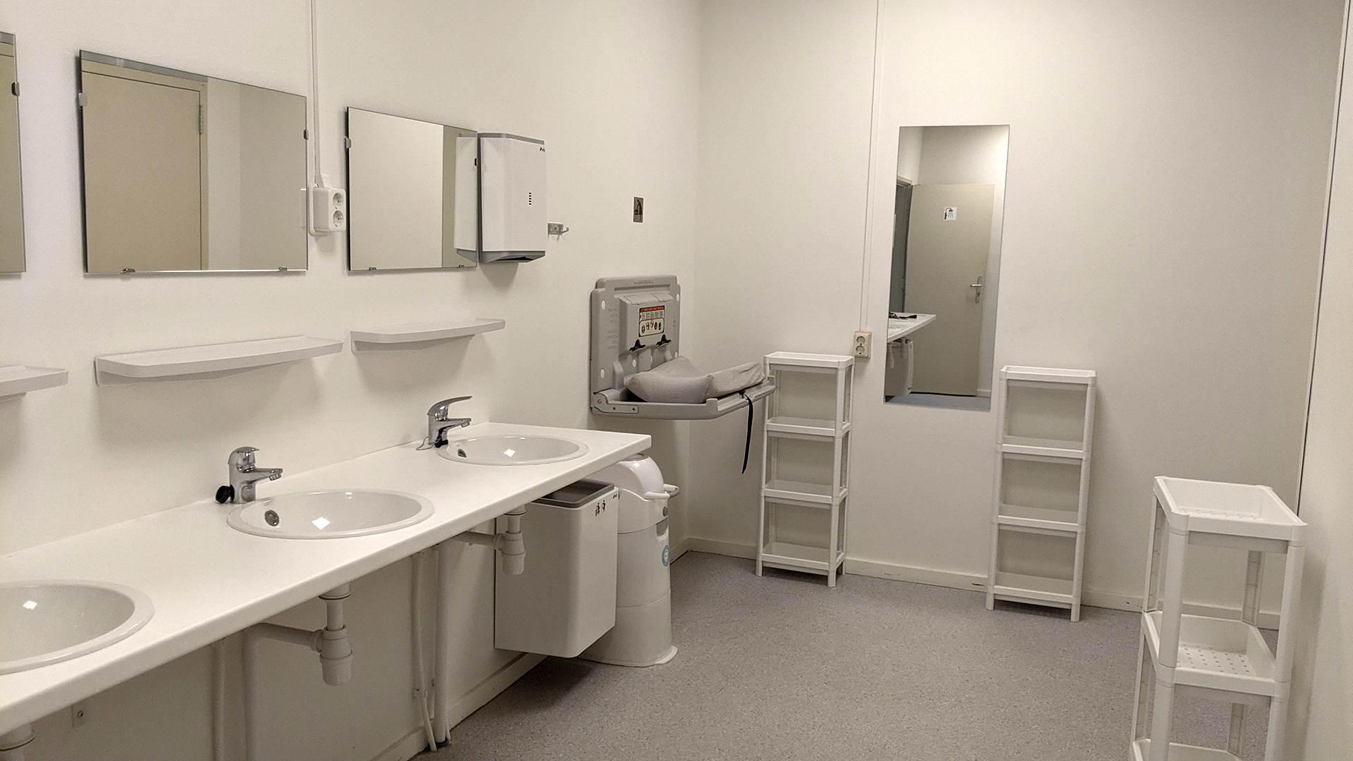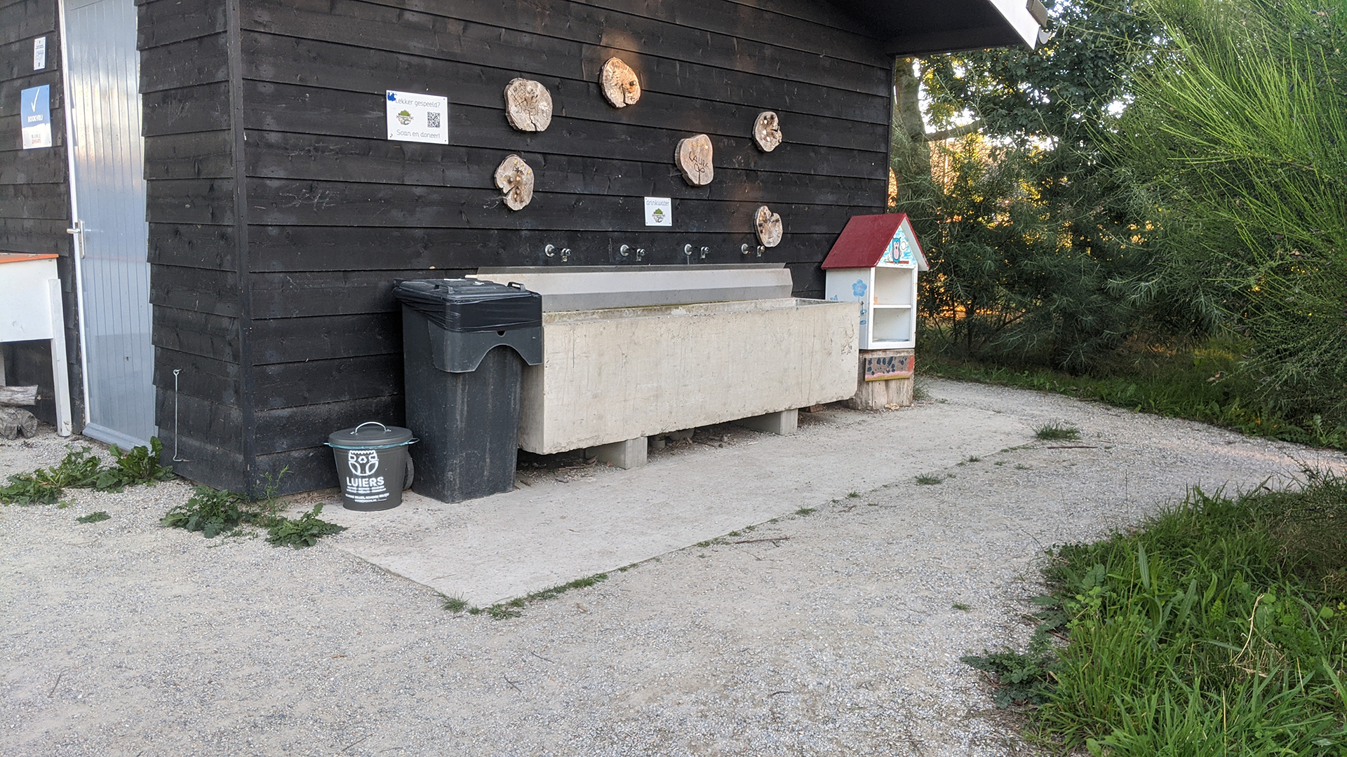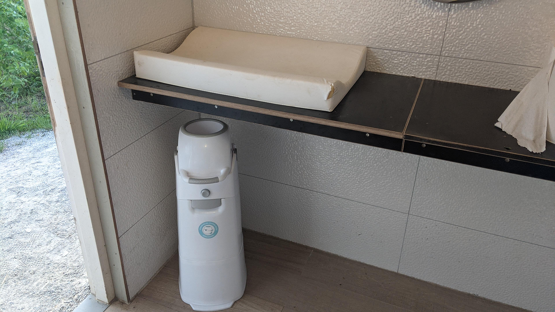 In het grote sanitairgebouw is een commode aanwezig bij de douche. hierbij staat een DiaperChamp Classic Medium emmer en bij de toiletten / douches in het andere sanitairgebouw staat in iedere unit een DiaperChamp Classic Regular emmer.
