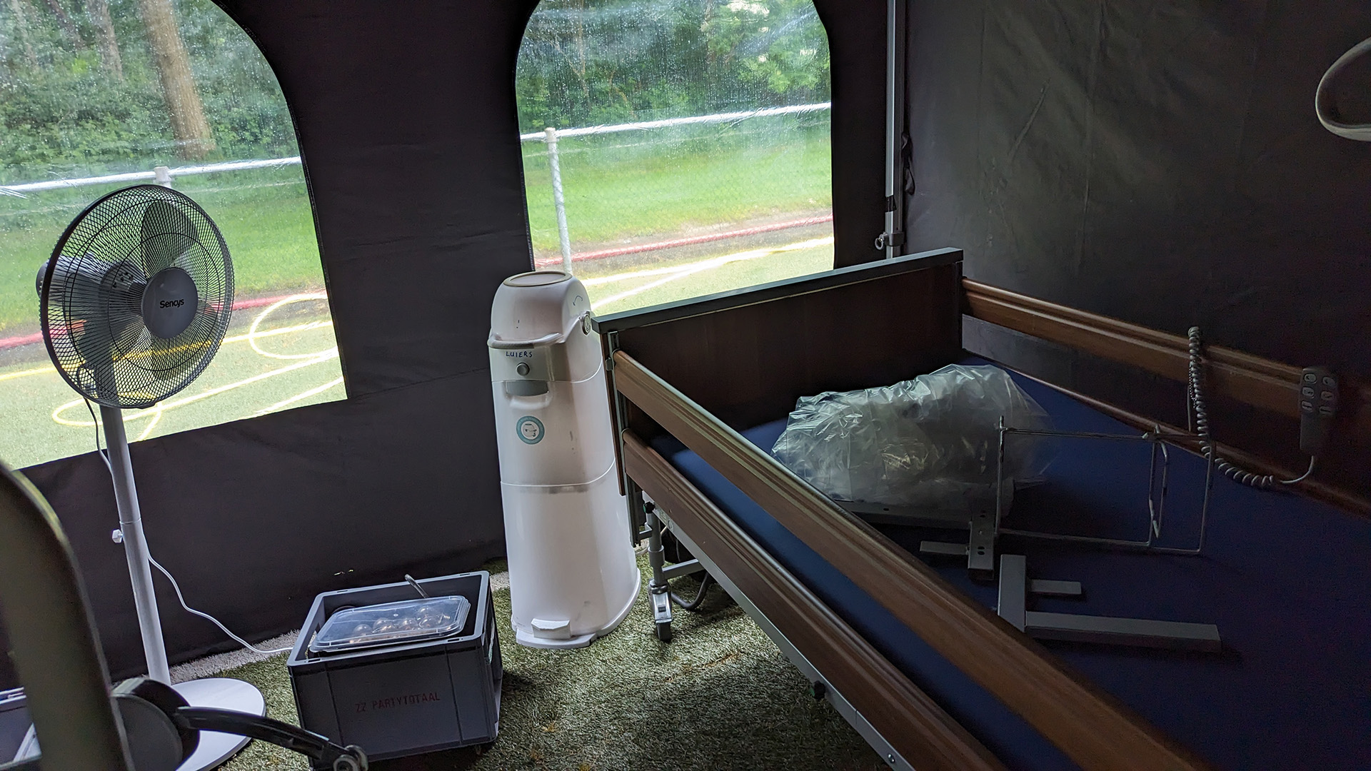 Dit is een noodopvanglocatie voor Oekraïense gezinnen. In de gezinskamers staan complete kindersets bestaande uit een Diaper Champ Classic Regular Luieremmer, Commode, Verschoonkussen, Ledikant en Kinderstoel en in de gedeelde badkamer bij de commode staat een Diaper Champ Classic Medium Luieremmer.
