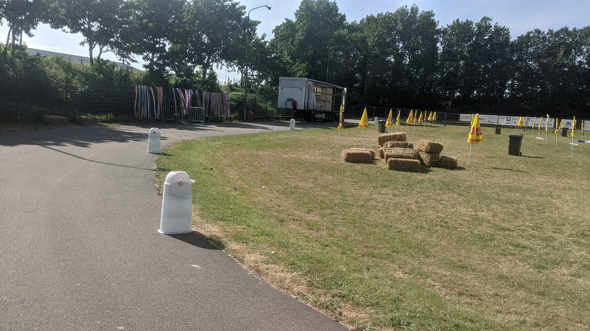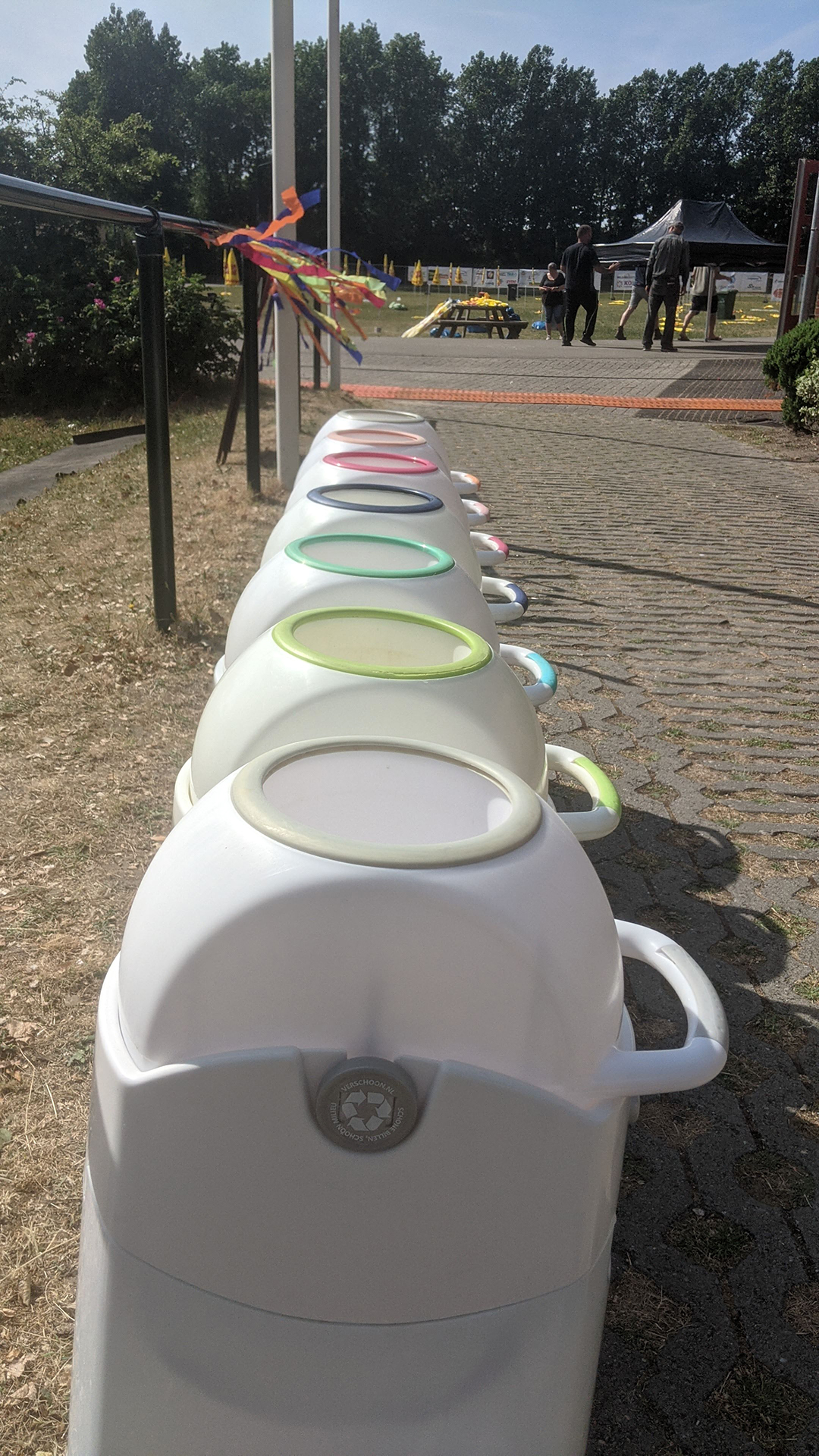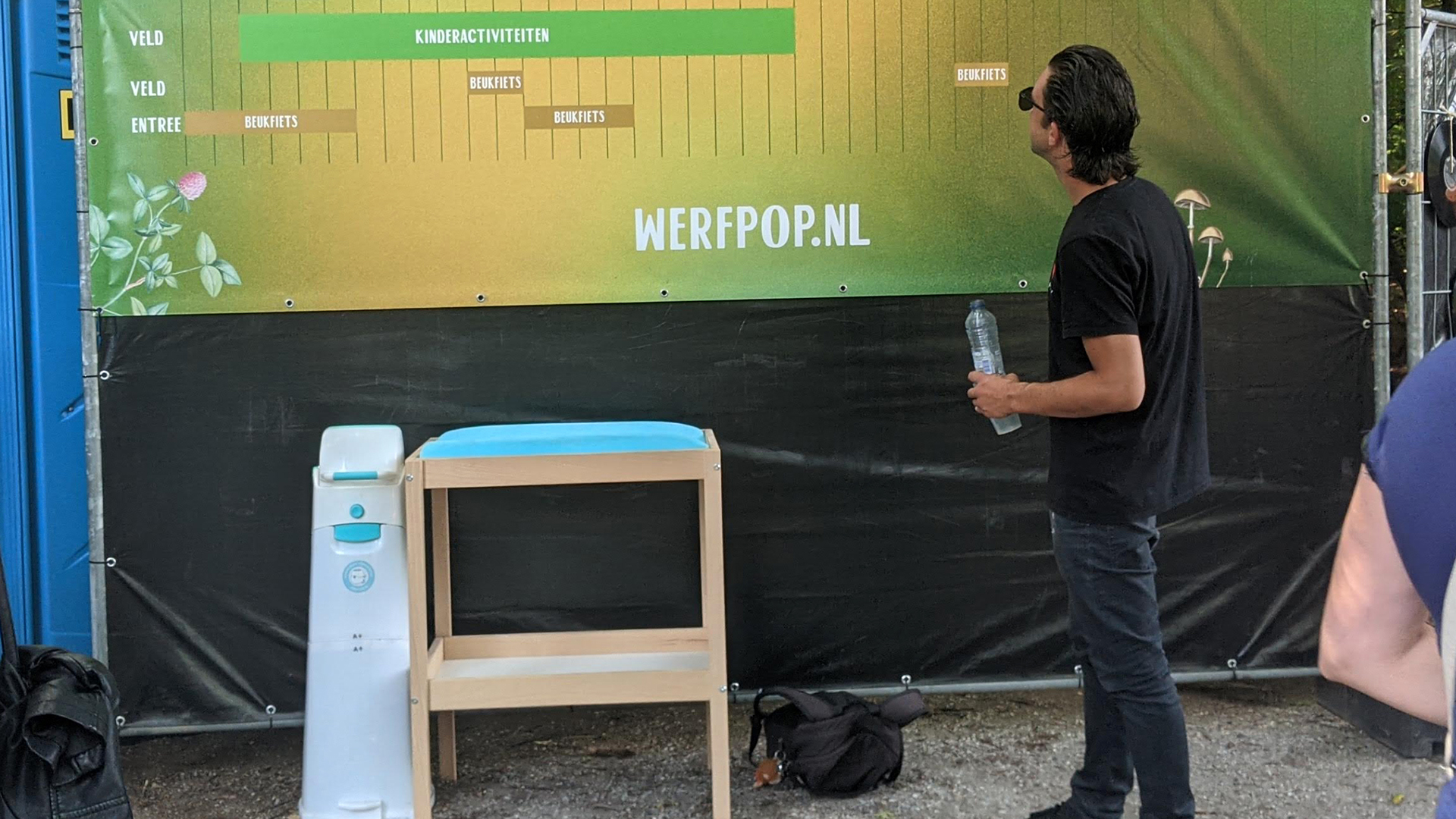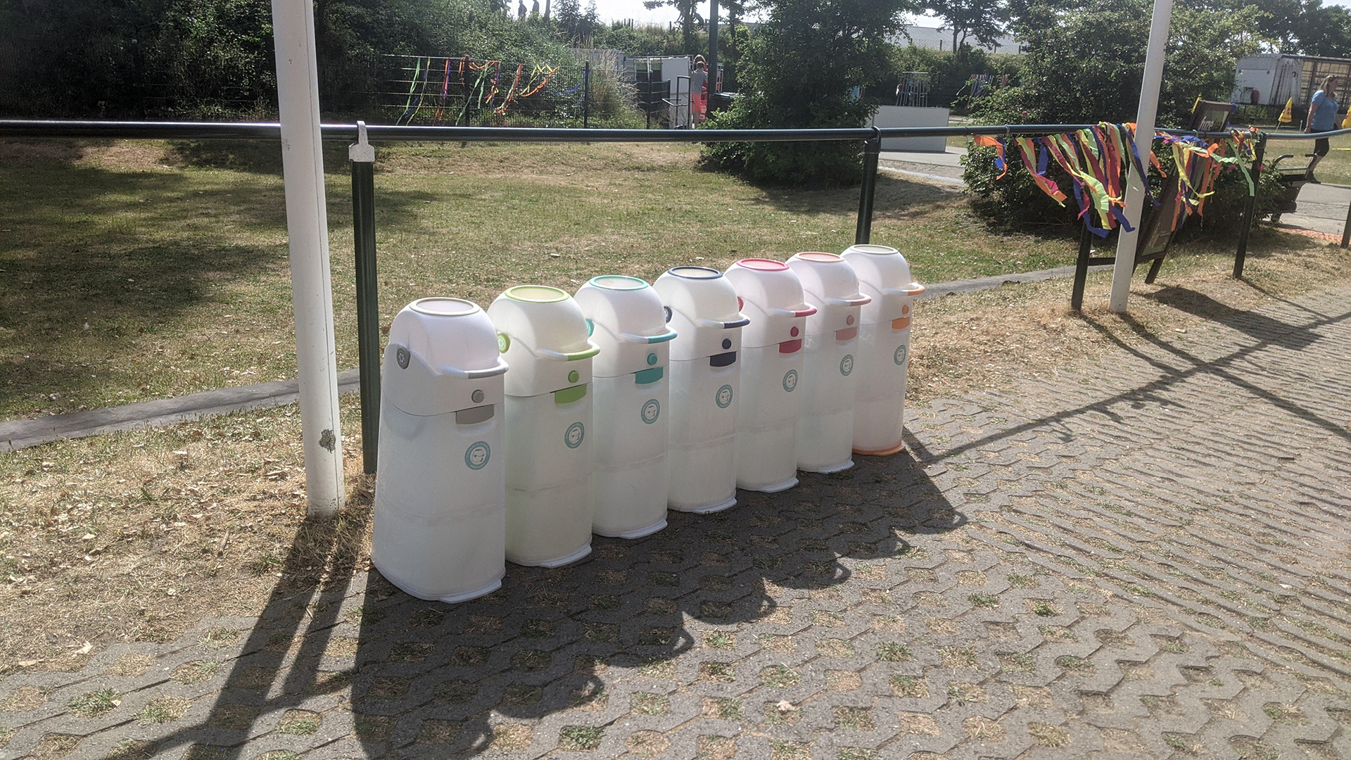 Op het festival staat bij de toiletten een commode met daarbij een DiaperChamp luieremmer en rondom de velden staan nog een aantal DiaperChamp luieremmers.