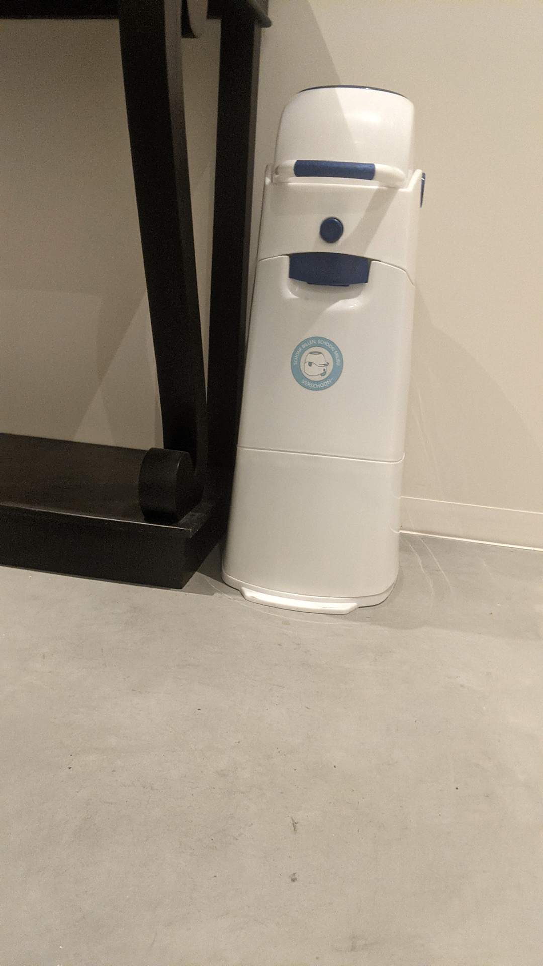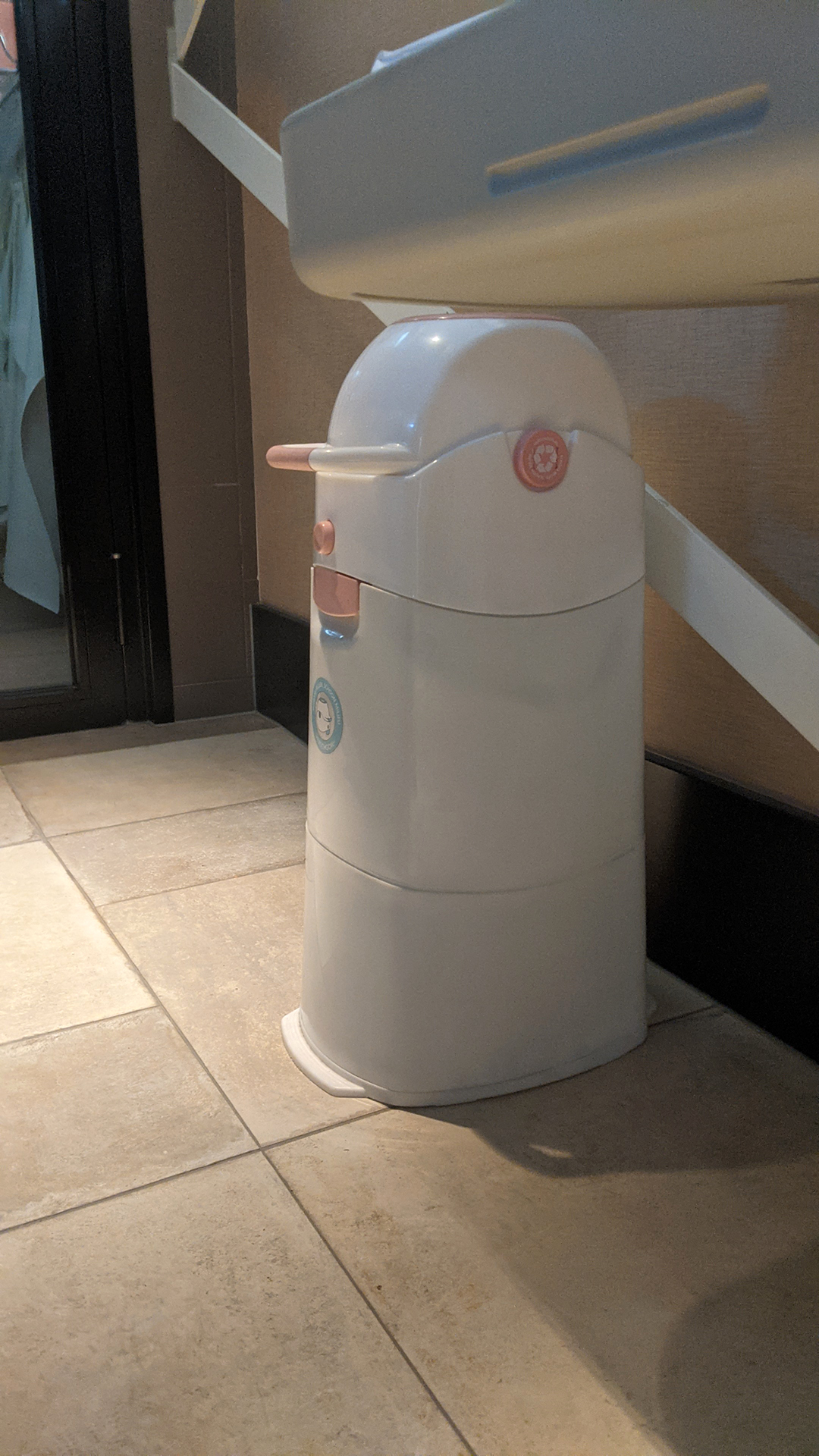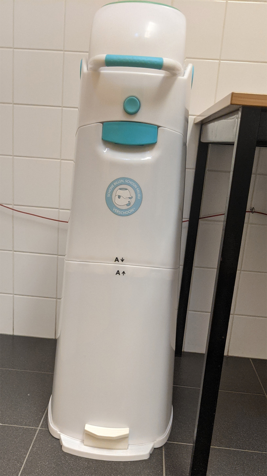 Voor de bezoekers die een kinderbedje lenen is er ook een eigen kleine luieremmer beschikbaar.
