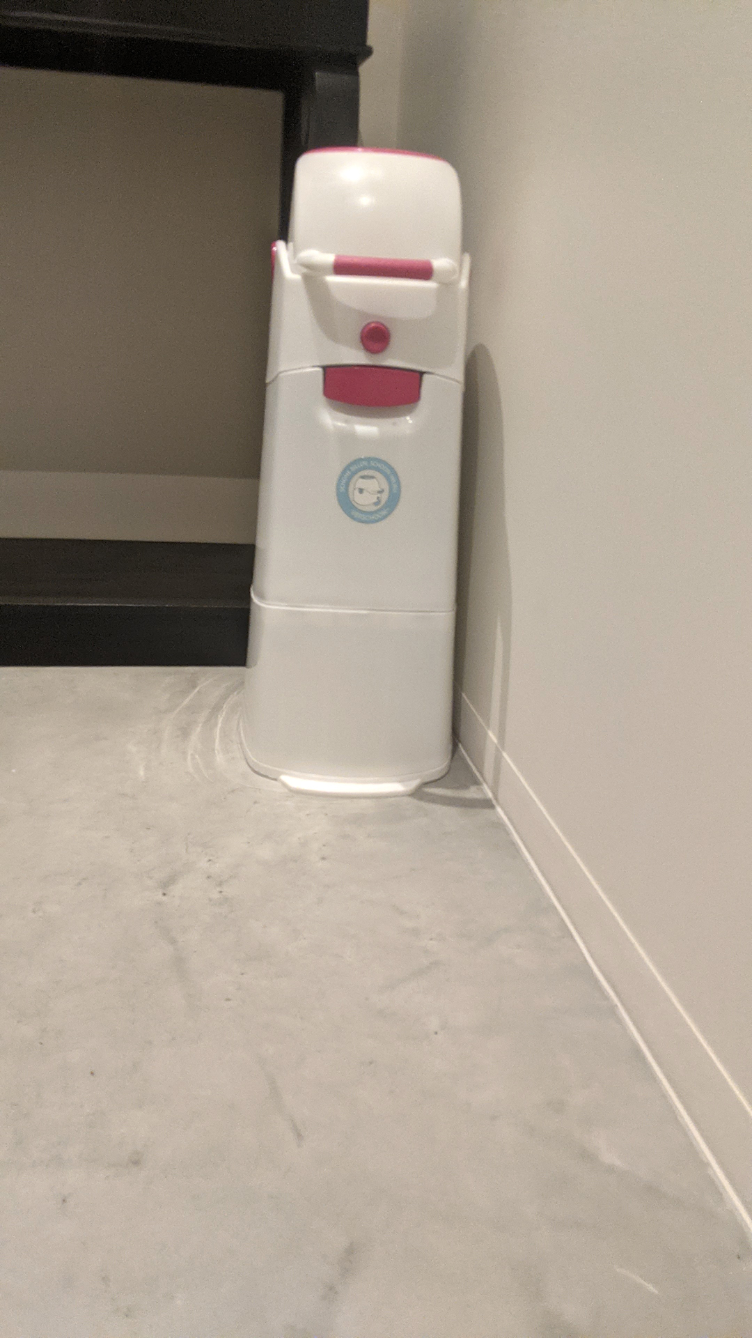 Bij dit toilet staat een DiaperChamp Medium om de luiers te verzamelen.