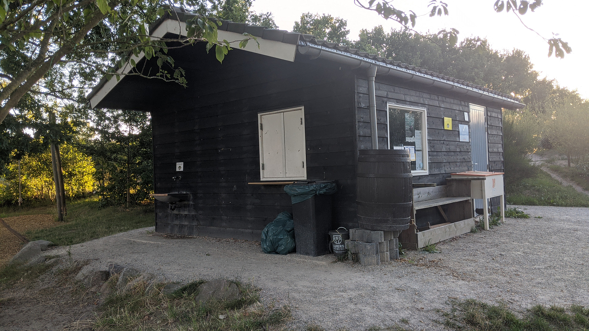 Aan de achterzijde van het speeltuingebouw is een (mindervaliden)toilet met een commode en daarbij een Diaper Champ Classic Medium luieremmer. Aan de voorzijde van het gebouw, naast de kliko's, staan kleine stalen luieremmers.